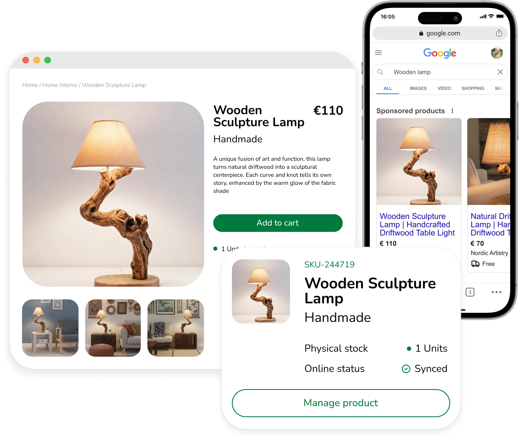 Traditional e-commerce tools are built for online-first vendors, not local retailers. They publish a catalog, but they do not make the real brick-and-mortar shelf inventory visible to the 91% who start online, nor do they reflect true in-store availability.